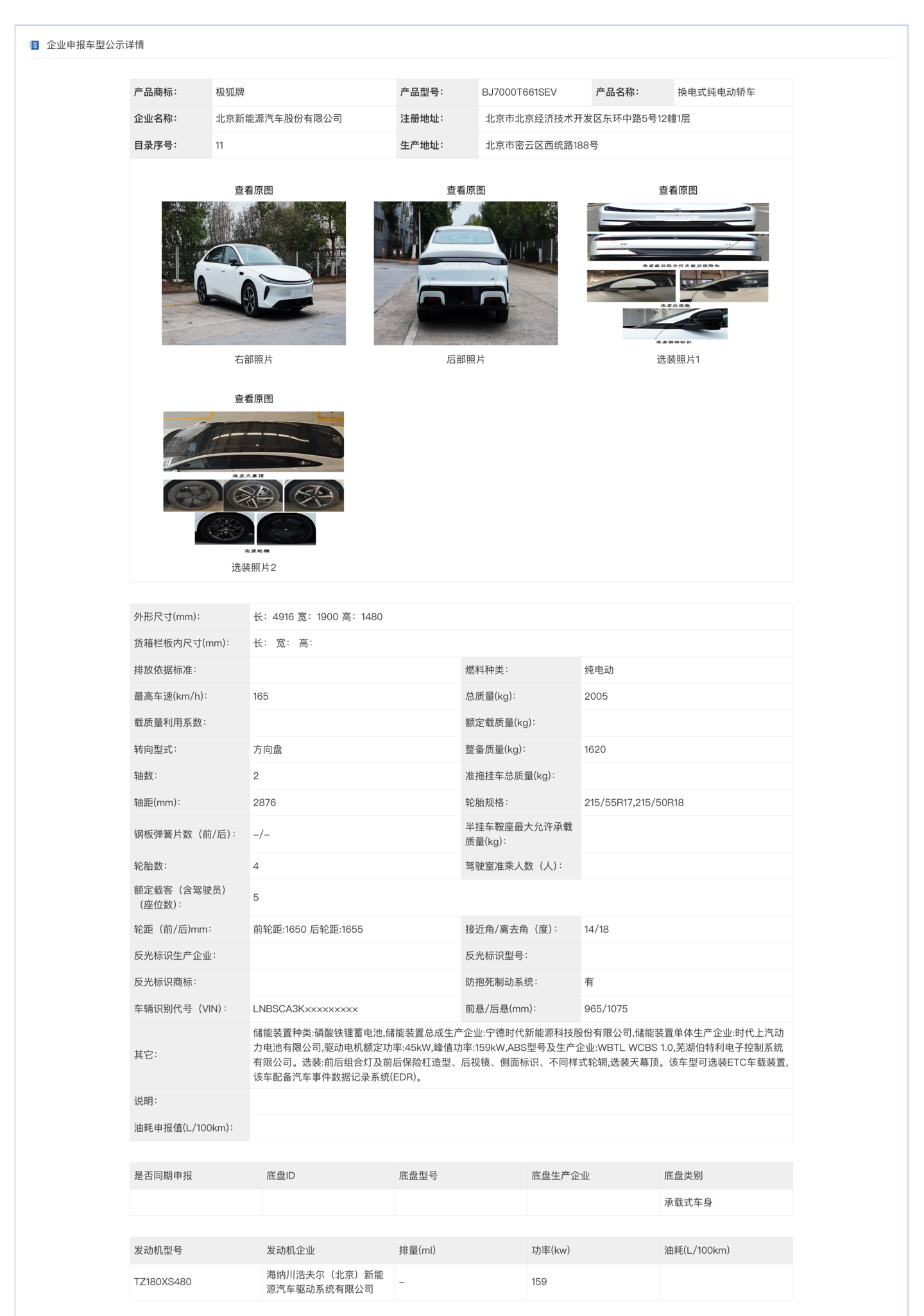 北汽极狐 S3 换电版工信欧义部申报:4.9 米长中大型轿车,最大功率 159kW