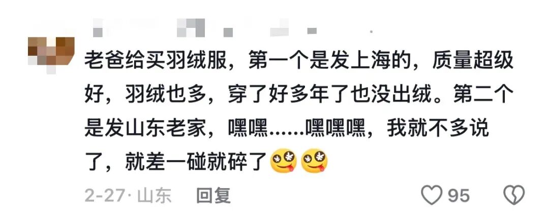 不仅是河南地区会收到B货,有人发现,山东才是被AB货针对的重灾区。山东网友于琪说,自己在北京,从来都没有觉得网购买到的东西质量不好,直到裸辞回了山东老家,才发现网购跟渡劫一样难。